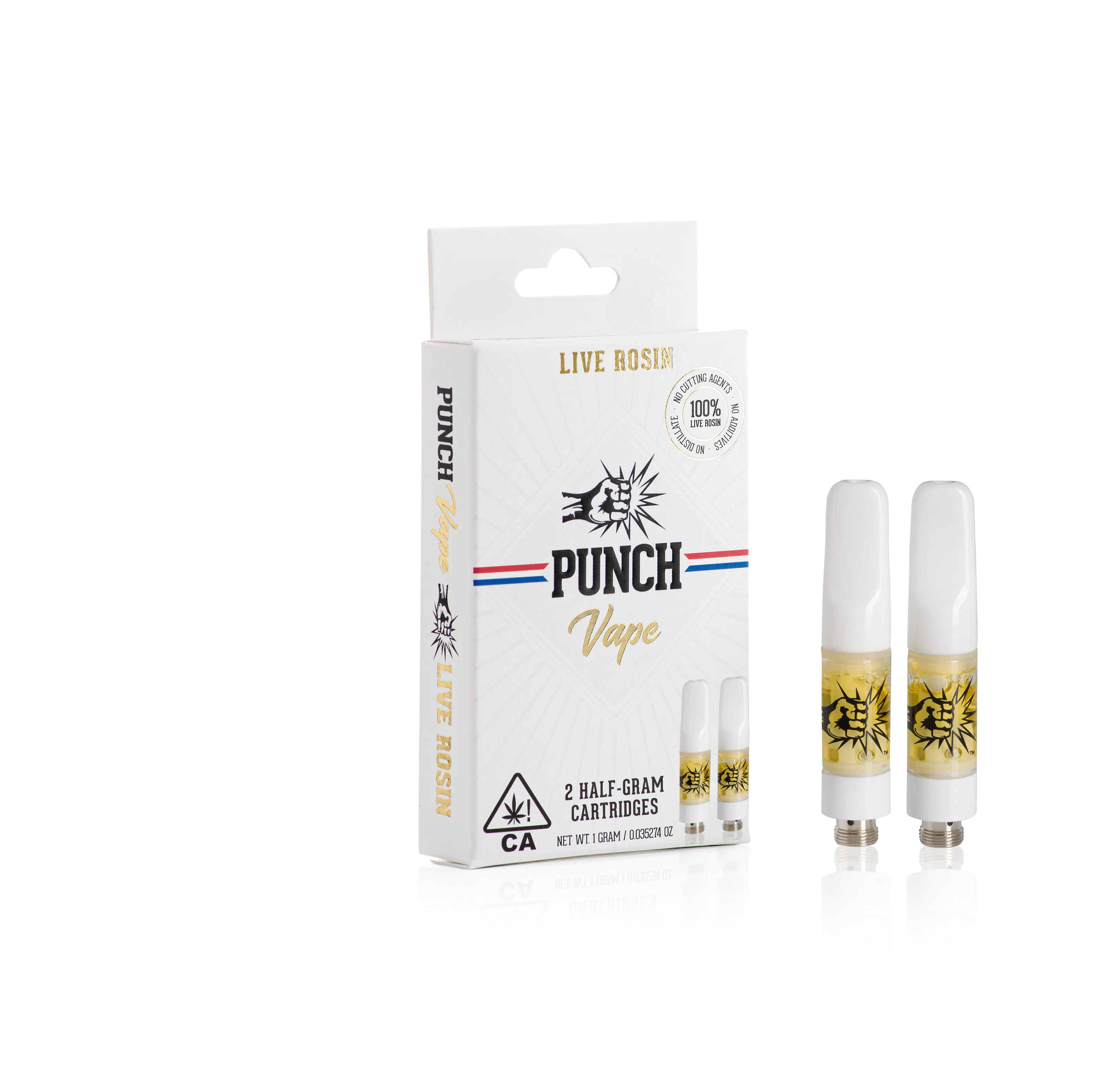 510 thread Punch Rosin Cart. Two Half Gram Carts in One. Reliable hardware specifically designed for Punch Live Rosin, Maintains the correct temperature to avoid burnt flavors. Premium Live Rosin, No Cutting Agent, No Additives, Perfect Consistency for optimum vaporization.