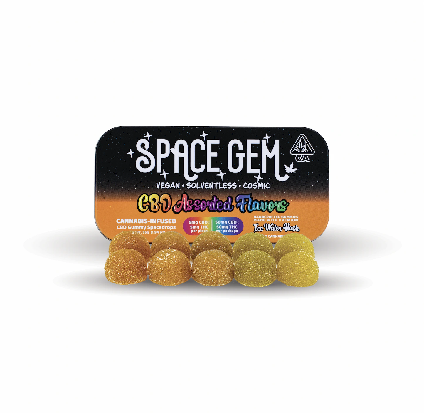 A miraculous rainbow of organic flavors to make a mouthwatering vegan gummy. Made with whole cannabis flower infusion for CBD and Ice Water Hash. Each gummy contains 5mg THC : 5mg CBD plus more cannabinoids for a full spectrum high. 50 mg THC : 50 MG CBD in each 10 pack