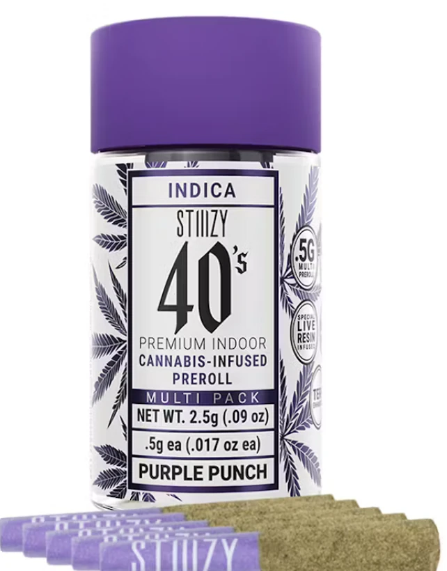 Stiiizy is setting the standard in the pre-roll game with the most revolutionary and innovative products. Elevate your pre-roll game. Stiiizy 40s pre-rolls are setting the standard with high potency, cannabis infused joints coated evenly with kief. Using our proprietary live resin infusion methods, we’ve designed every pre-roll to offer 40%+ THC potency with a unique flavor profile. With a smooth inhale and tasteful exhale, each and every Stiiizy 40 is packed with indoor grown flower, specifically made to ensure a potent and long-lasting high. Spark up the 40s.
