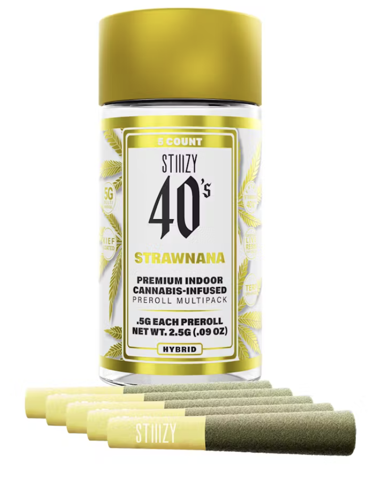Elevate your pre-roll game. Stiiizy 40s pre-rolls are setting the standard with high potency, cannabis infused joints coated evenly with kief. Using our proprietary live resin infusion methods, we’ve designed every pre-roll to offer 40%+ THC potency with a unique flavor profile. With a smooth inhale and tasteful exhale, each and every Stiiizy 40 is packed with indoor grown flower, specifically made to ensure a potent and long-lasting high. Spark up the 40s.