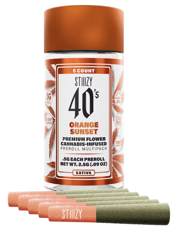 Elevate your pre-roll game. Stiiizy 40s pre-rolls are setting the standard with high potency, cannabis infused joints coated evenly with kief. Using our proprietary live resin infusion methods, we’ve designed every pre-roll to offer 40%+ THC potency with a unique flavor profile. With a smooth inhale and tasteful exhale, each and every Stiiizy 40 is packed with indoor grown flower, specifically made to ensure a potent and long-lasting high. Spark up the 40s.